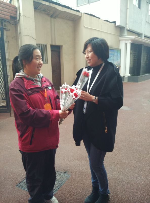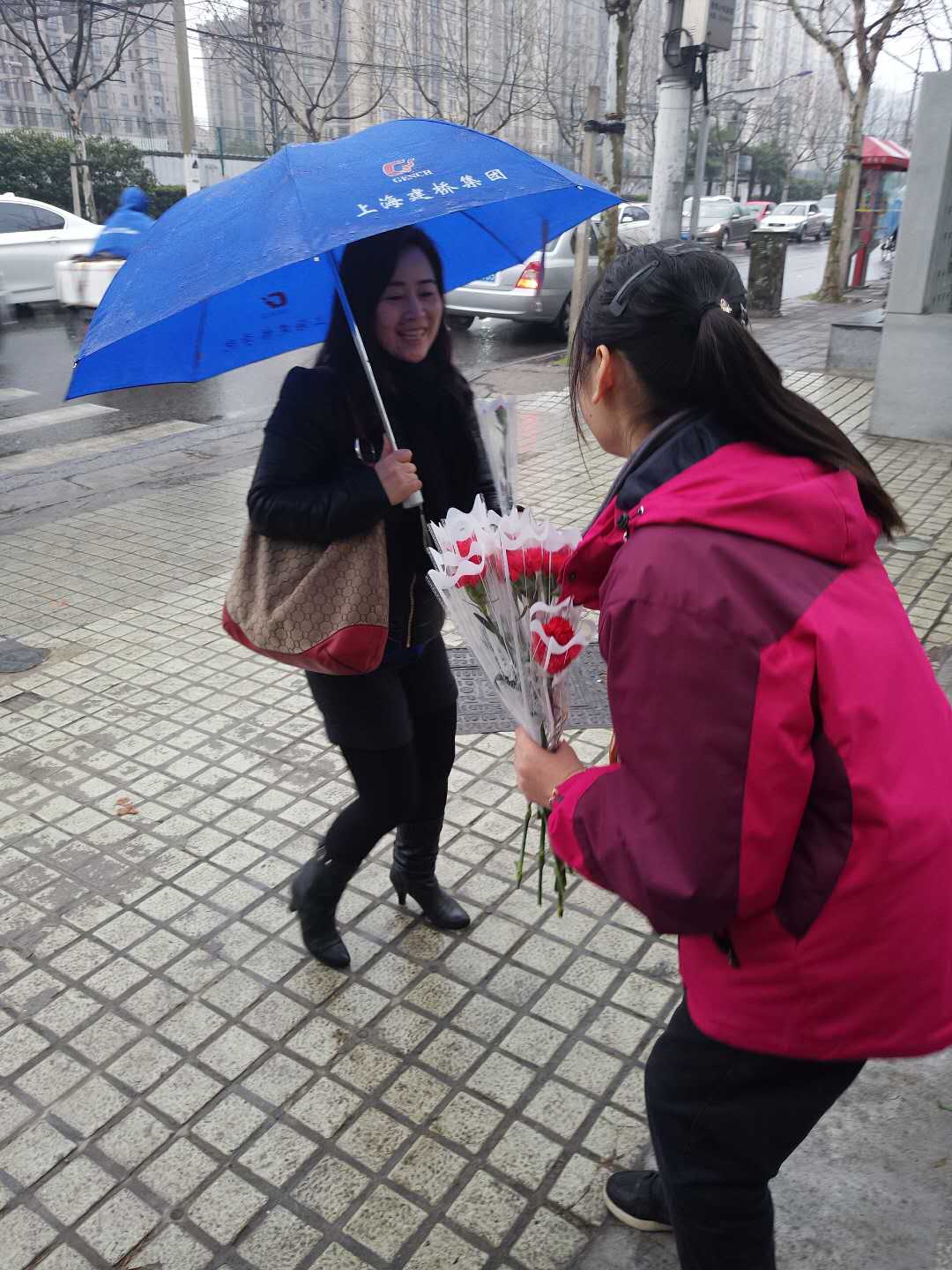 一朵鲜花、一句祝福、一份温暖,2016年的妇女节,阴雨天气,内心却如太阳般温暖。上海商业会计学校交通路校区中专部易班学生工作站成员一早就来到校门口,手捧康乃馨迎接女教师的到来。