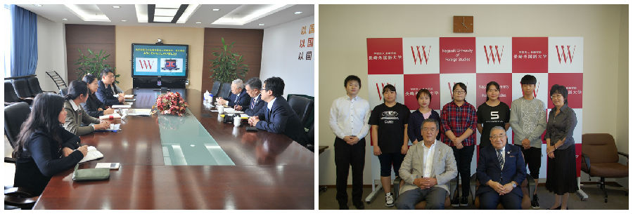 2016年10月12日上午,日本长崎外国语大学栗屋旷理事长和石川昭仁校长对我校进行了友好访问。这是自2013年两校缔结姐妹学校以来长崎外大最高级别的拜会。理事长和校长不顾高龄,远涉千里来到我校,石川校长更亲自进入到一、二年的日语班级和商务日语专业学生围绕东京奥运会、外语学习等话题进行了亲切的交流。