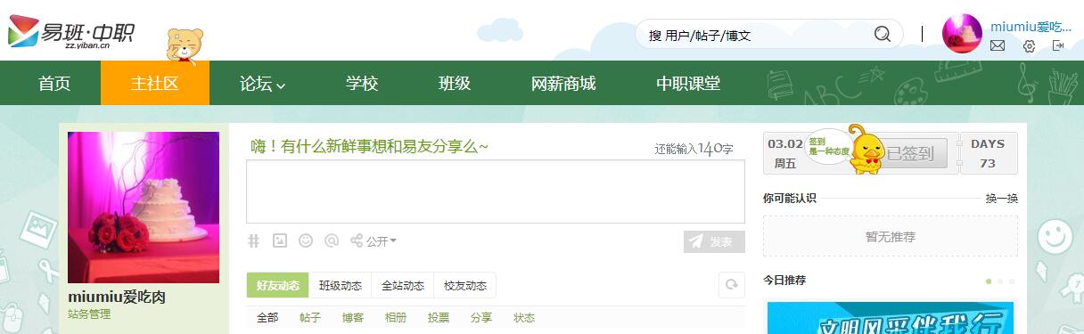 怎么看签到呢?进入主社区,右上角的签到栏就是啦,将此页面截图就是啦!