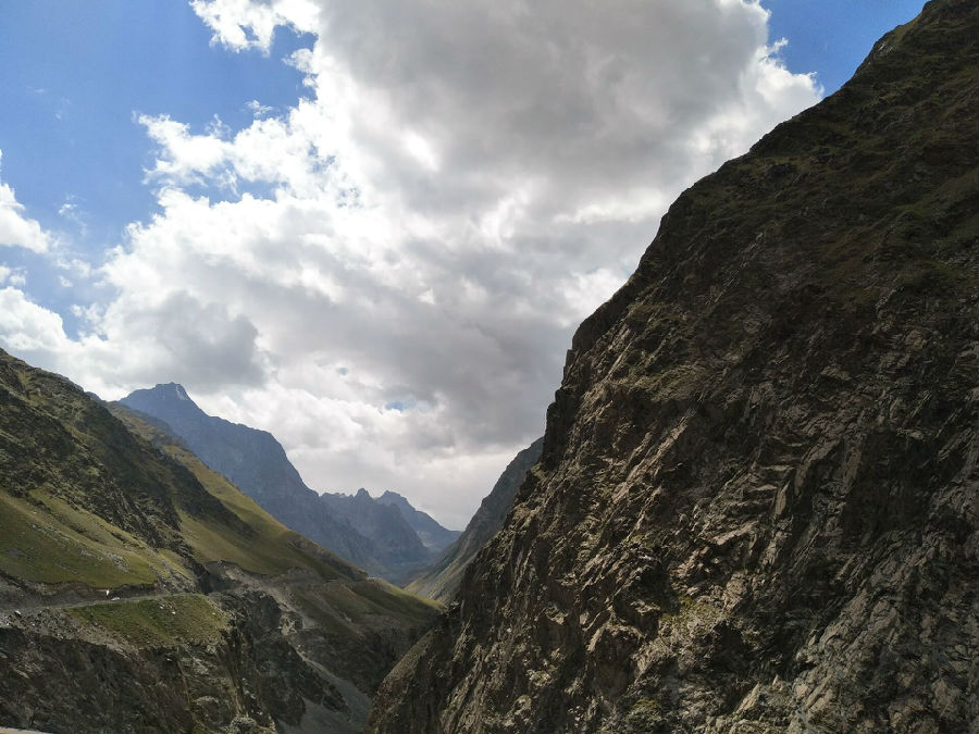 随着海拔的一路上升,风格迥异的风景也接连在我们眼前呈现出来:时而是如画般地草原,时而是高耸入云的松树林;时而是缥缈在远方的天山山脉,时而又是近在咫尺的断崖峭壁。