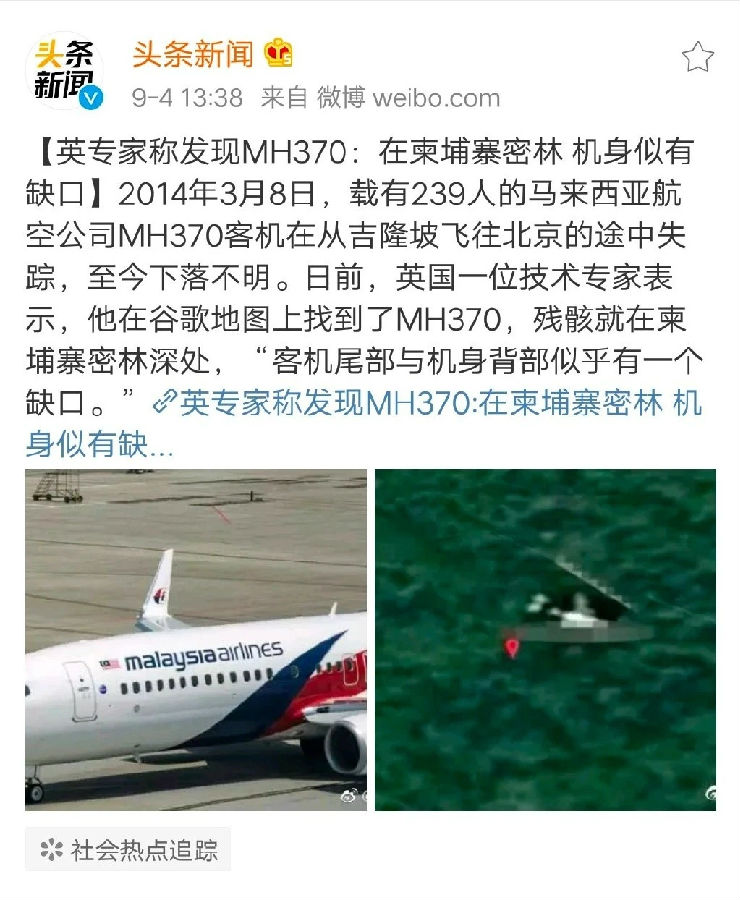 据国外多家媒体在9月3日的报道,英国技术专家伊恩·威尔逊在接受采访时称,他在谷歌地图上找到了这些年来失踪的马航MH370客机。