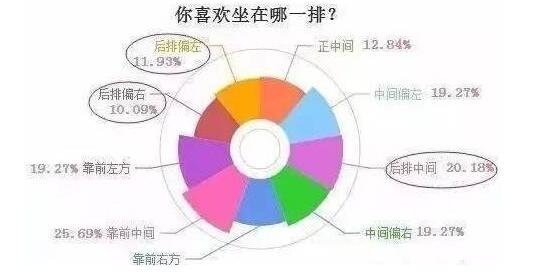 曾经有网站曾做过一个调查,调查的主题就是“你喜欢坐在哪一排”,结果是这样的: