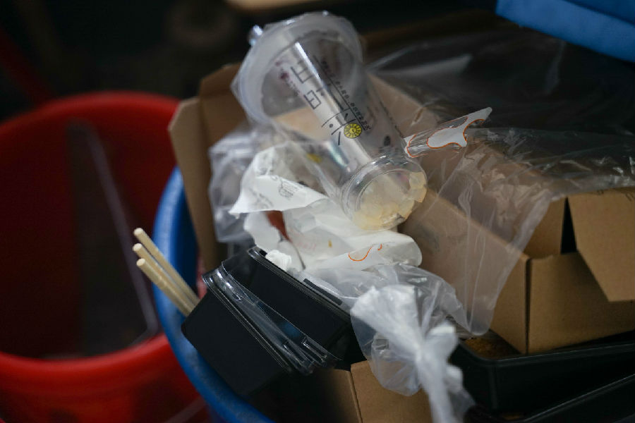 7、在学校里,吃完外卖后对剩下来的包装盒及包装袋,我们应该怎么去处理( )