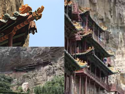 我打卡的最后一个景点是位于恒山的悬空寺,它始建于北魏王朝后期,距今已有1500多年历史。全寺为木质框架式结构,按照力学原理,以深插入岩石的方木横梁为基,以细细的立木为撑,紧贴山石,相互构连 ,形成了“高悬百尺”之上的危楼,绝壁之下巨石上的“壮观”二字,据说就是诗仙李白的墨宝。在壮观的后面有一点,意思是壮观