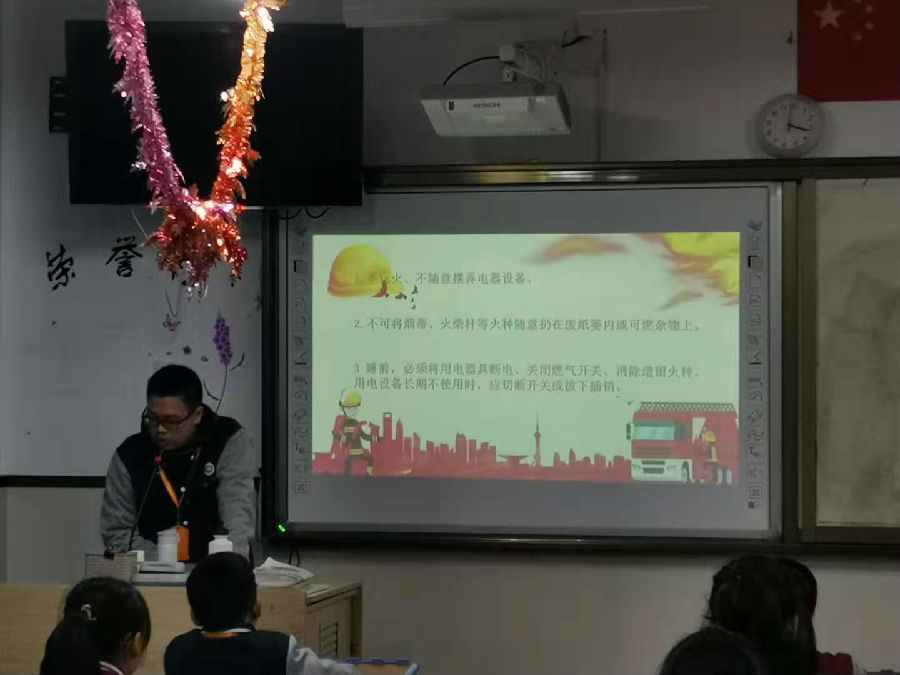 在听完黄警官的讲座后,在班长的组织下,我班又开展了一次以消防安全为主题的班会。会上,班长介绍了许多和火灾有关的知识,以及如何预防火灾,PPT制作的非常完美,讲的也头头是道,点个赞!
