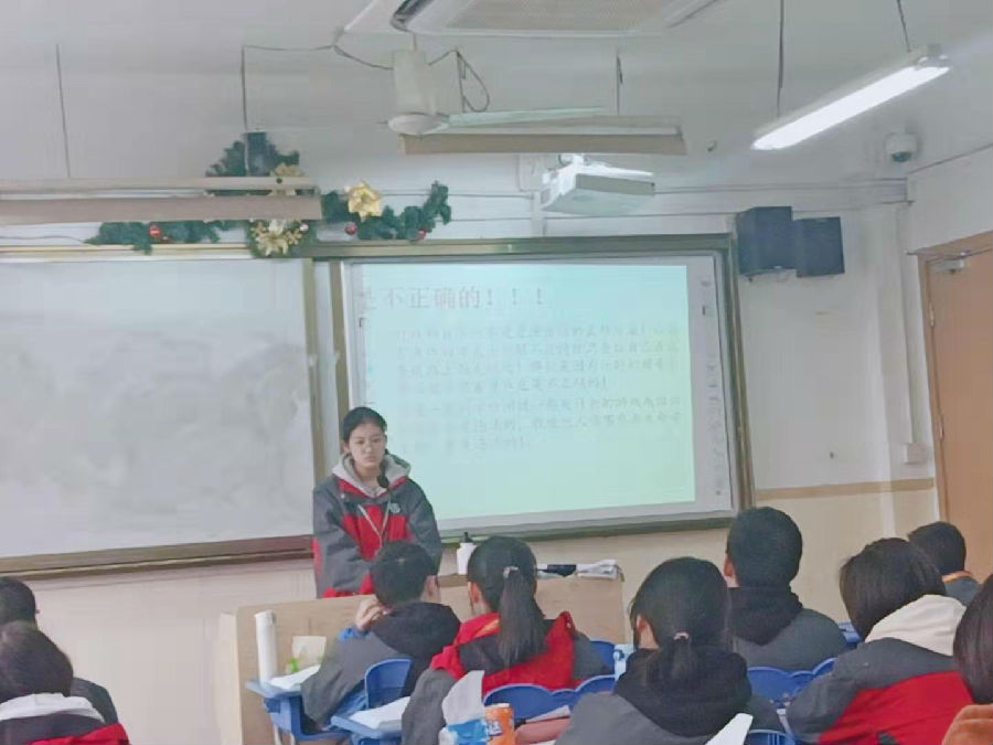 经过反思我明晰了组织好一次班会活动需要的是什么。首先要提前思考,设计出活动的目的;其次要研究好细节,明确如何与同学互动,引发同学们思考;最终是要给足同学时间了解和理解,要与同学沟通、交流,让同学主动参与回答,因为他们是活动的中心,是活动最大的支持。仅有做好这些才能够取得良好的效果。