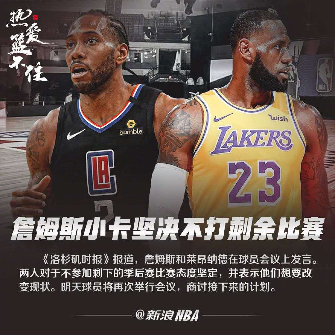 詹姆斯和莱昂纳德在球员会议上发言,坚决不参加剩余比赛,并表示想要改变。#詹姆斯伦纳德坚持不打剩余比赛##湖人快船投票取消赛季# #NBA罢赛#