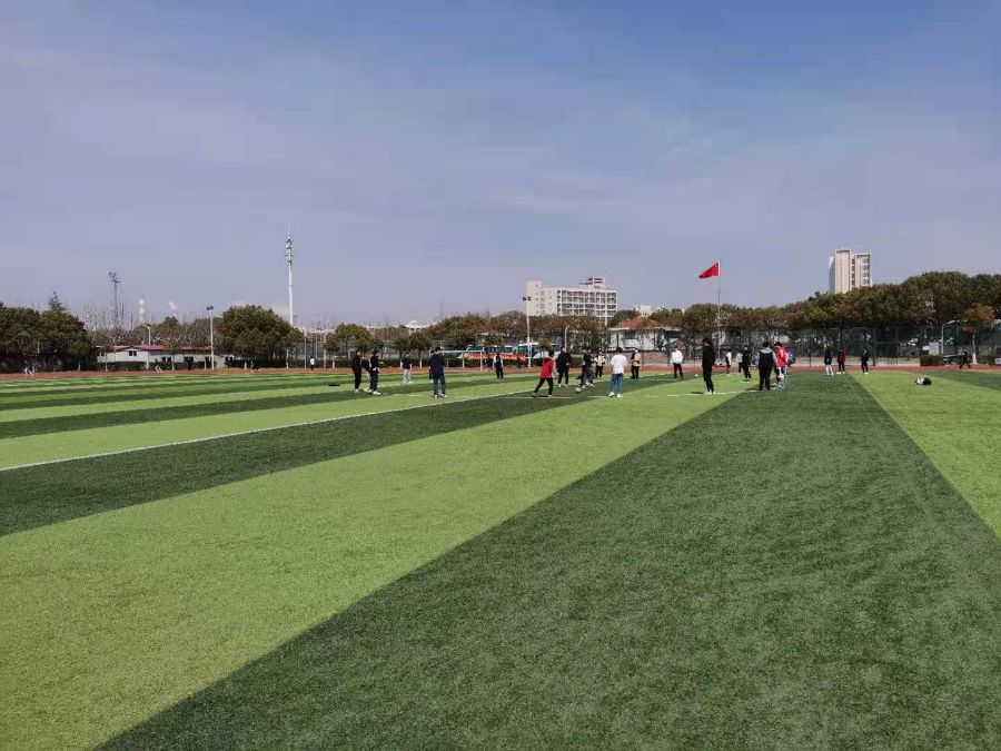 接下来就是体育场,我们来到操场时正好碰到他们在上体育课,一圈400米,听说他们跑了11圈,着实厉害。还看到了他们正在踢足球,其乐融融的环境,不经让我们放下了学习的压力,全身心的投入到了体育运动中。