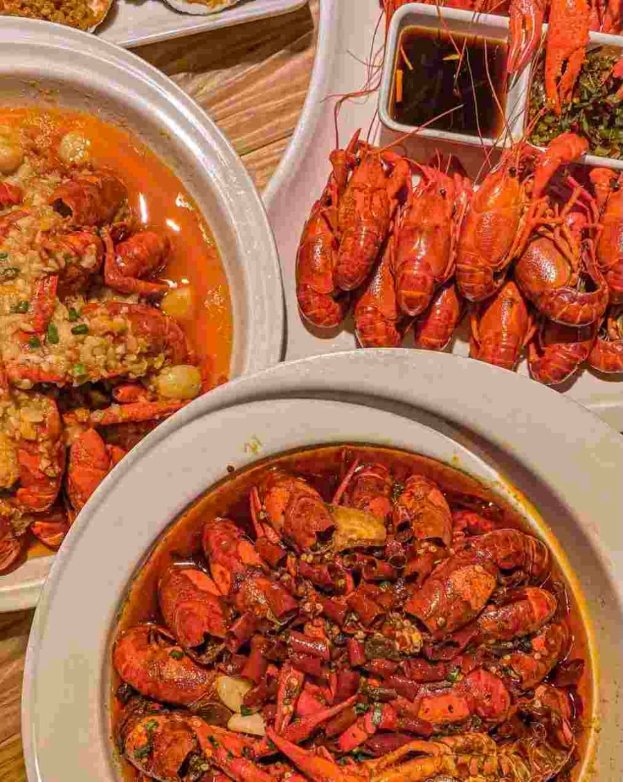 如果你不想出门,想待在空调房里追剧又嘴馋,那不妨自己动手做一做。如果你觉得自己动手太麻烦了,那么推荐你去很多人都认可的上海最好吃的小龙虾之一---龙虾风暴(静安寺大排档店),他们家的花雕冰醉+麻辣一级棒!花雕酒的香味浸润了每一寸肌理,嗦起来超级爽;辛香麻辣各味俱全,麻辣口味的辣度要更上一个层次,吃的爽的同时就是手指要遭殃。