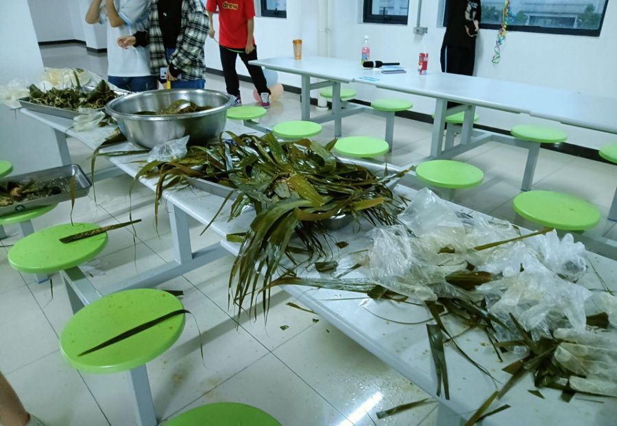 我们是以一个班级为单位,活动有包香囊、包粽子、和一个晚会。