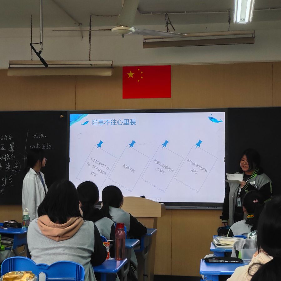 上周二的心理班会课上,在心理委员夏曹婧和宣传委员孙佳颖的积极组织下召开了“好好爱自己”的主题班会活动。