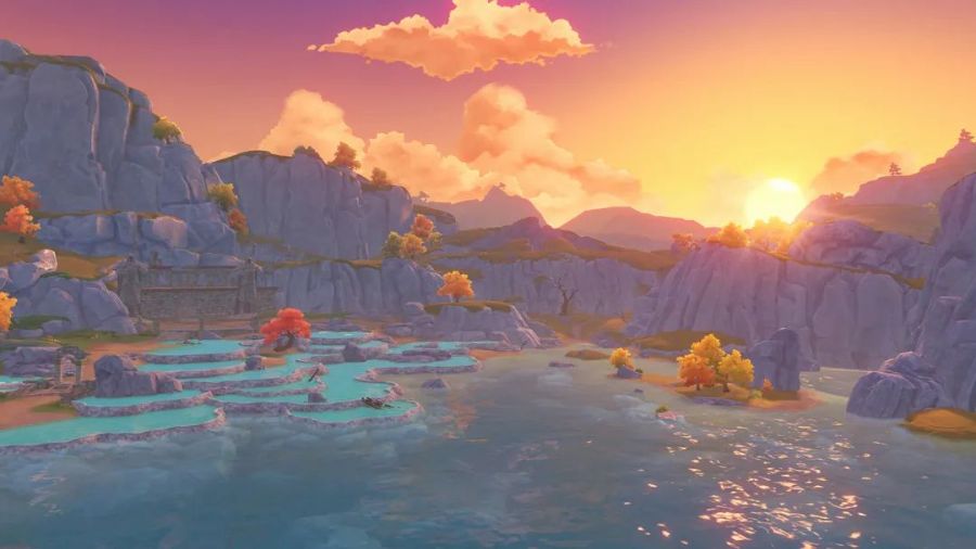《原神》游戏世界由多个不同风格的区域组成,音乐创作上以管弦乐配器为主基调,尝试加⼊各异的世界音乐元素。其中璃月地区更具东方神韵,用五声调式的旋律结合西方的浪漫派和声织体加管弦乐配器,邀请了上海交响乐团和民乐艺术家演奏,成为玩家们津津乐道的话题。