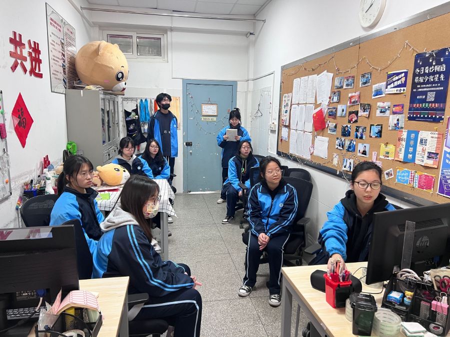 32日中午,在宝山校区易班工作站,召开了上海新闻出版职业技术学校宣传部的会议。参与人员包括宣传部副部长罗蔓妮以及21届所有部员。