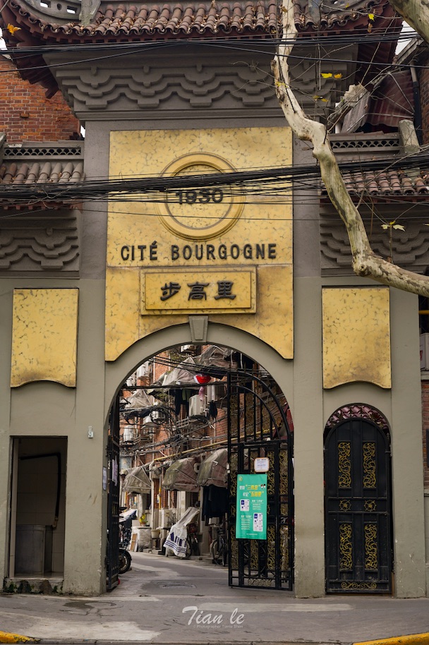 1930年由法商投资中国建业地产公司设计并施工弄堂口的门楼用中法两种文字标注法文名称Cité Bourgogne)得名于法国的勃艮第地区