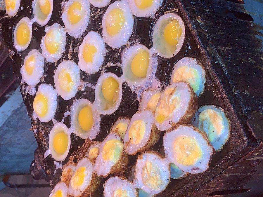 它就是烤鹌鹑蛋,不知道是不是这么叫它,图片放在下面了,一来这个古镇,我就心心念念这个美食,我就对它情有独钟!它的口感很奇妙,咬上去脆脆的,吃进去的味道有点咸咸的,配上黑胡椒粉,这个味道堪称一绝。
