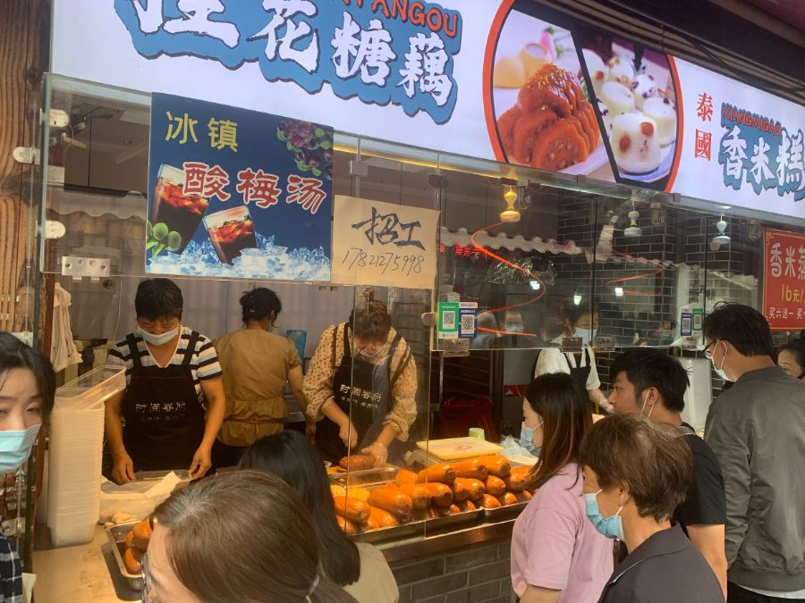 因为国庆假期的原因,去召稼楼的人络绎不绝,在入口就被人群堵住了,进去就是许许多多的小吃,咸肉,塌饼,糖葫芦等。对于召稼楼我也是十分熟悉的,在这之前已经去了许多次,这次去是专门为了找一个小吃,这个小吃在我十岁的时候就有了,可是后面竟然没有了,这次抱着试一试的心态去找,没想到真的被我找到啦!