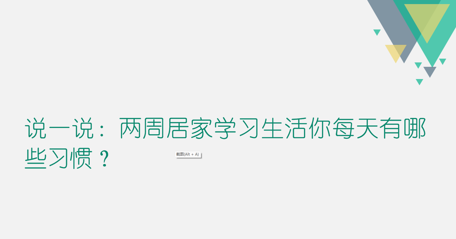 2、第二部分:互动讨论2周线上居家学习生活每人每天的习惯。