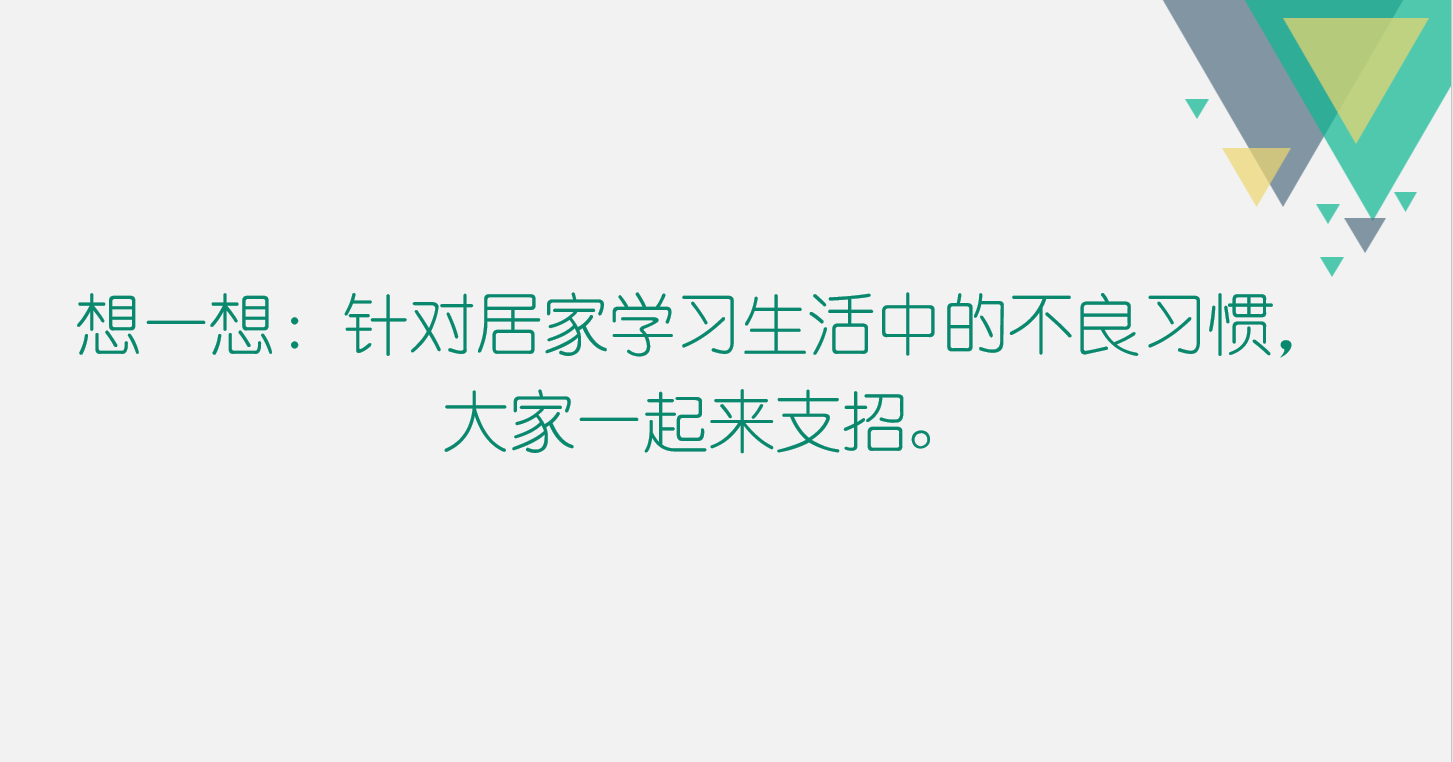 5、第五部分:对于居家学习生活中的不良习惯大家一起来支招。