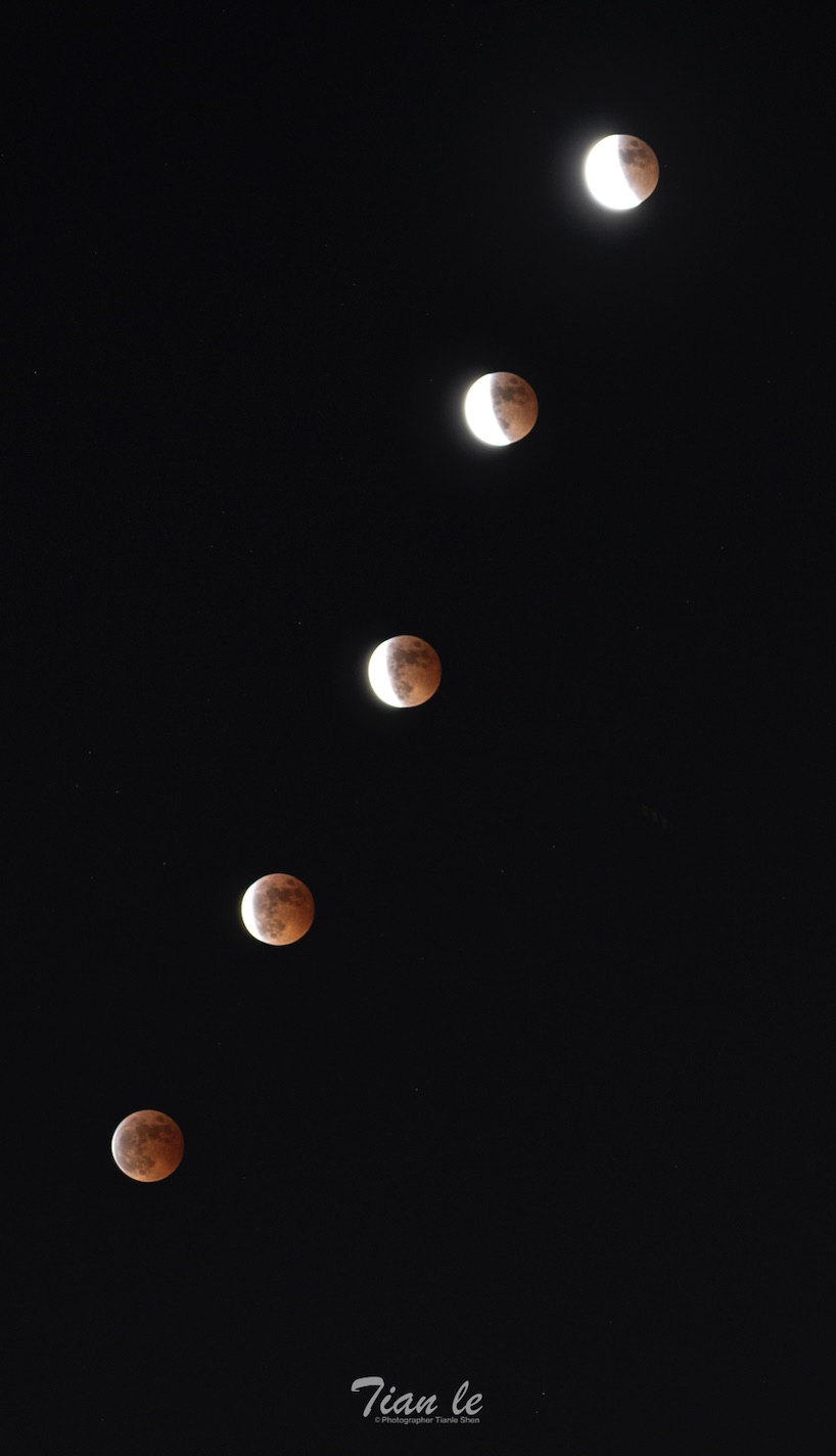 月全食的过程分为初亏、食既、食甚、生光、复圆五个阶段。