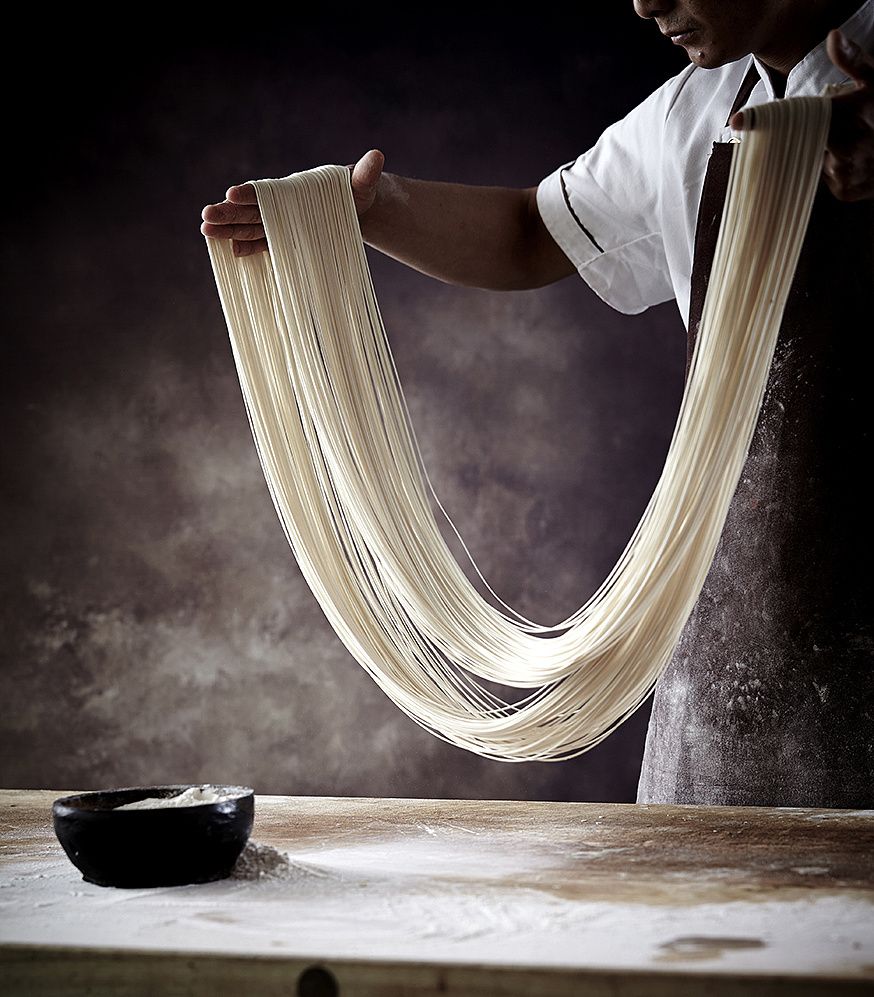 兰州牛肉面的制作的五大步骤无论从选料、和面、饧面,还是溜条和拉面,都巧妙地运用了所含成分的物理性能,即面筋蛋白质的延伸性和弹性。