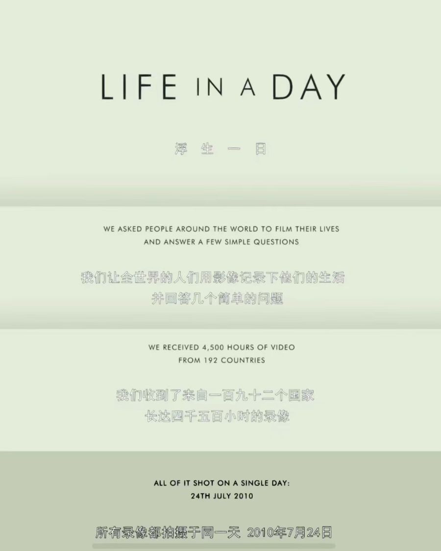 在纪录片的结尾,有个女孩讲的话让我印象很深刻。她哽咽地说,其实她很期待这一天能发生什么有趣的事情,值得纪念的,然后拍到视频里。但是这样的生活并不是时常都有,它只是很普通的一天。