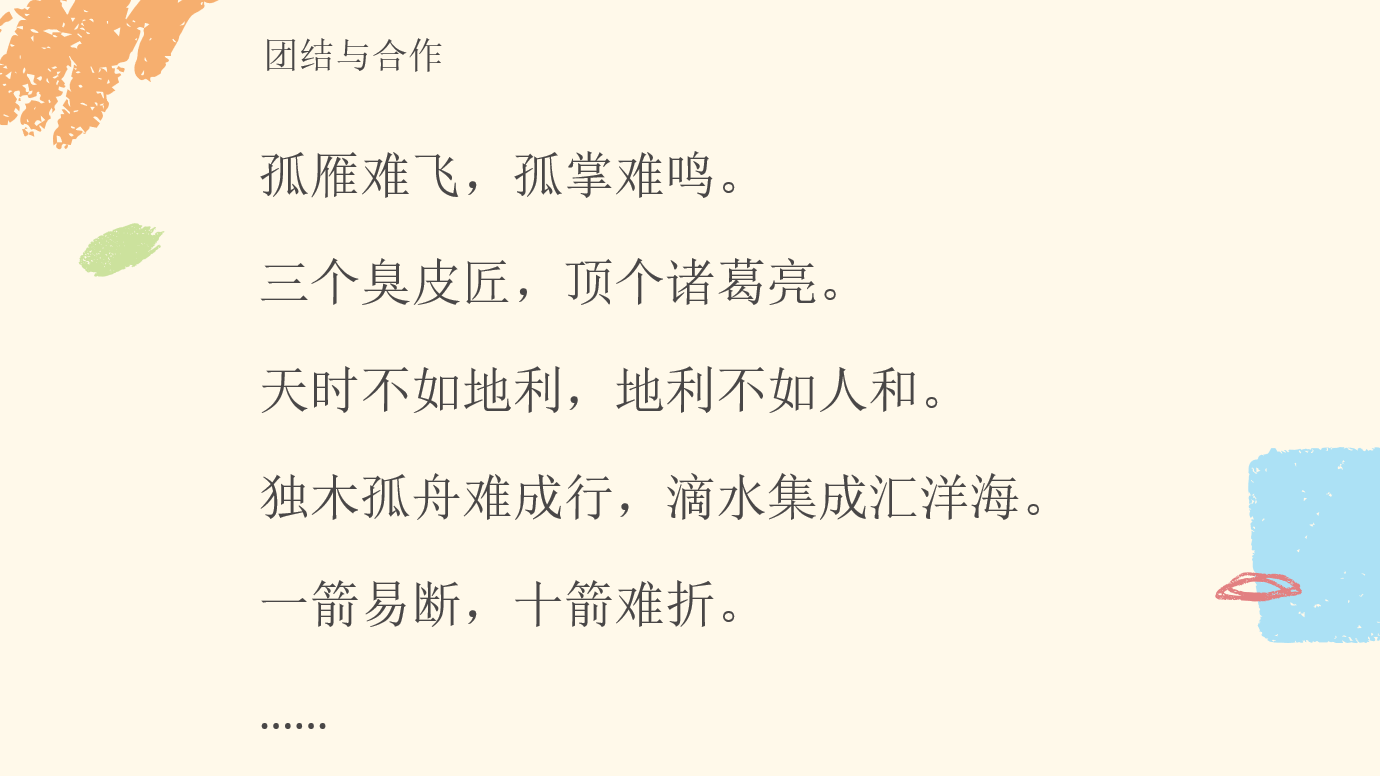 1、分享关于团结合作的谚语/俗语