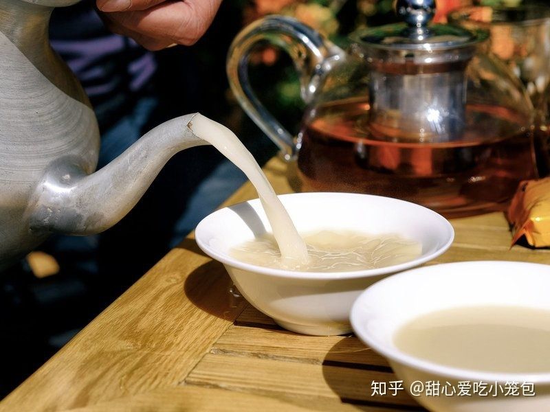酥油茶一千多年前,藏医学家宇妥·云丹贡布在他所著的《四部医典》中就论述了酥油对人体的营养作用,“新鲜酥油凉而能强筋,能生泽力又除赤巴热”,即是说新鲜酥油润泽气血,精力充沛,使皮肤不粗裂,还能治疗粘液及发热性疾病。认为酥油可“益智增热力”,“千般效用延年称上品”,“可促进人的体力及延长寿命”,“人们日常饮食靠油类,体内供热内脏可洁净。体质即补气力容颜添,五官坚固长寿到百年”。