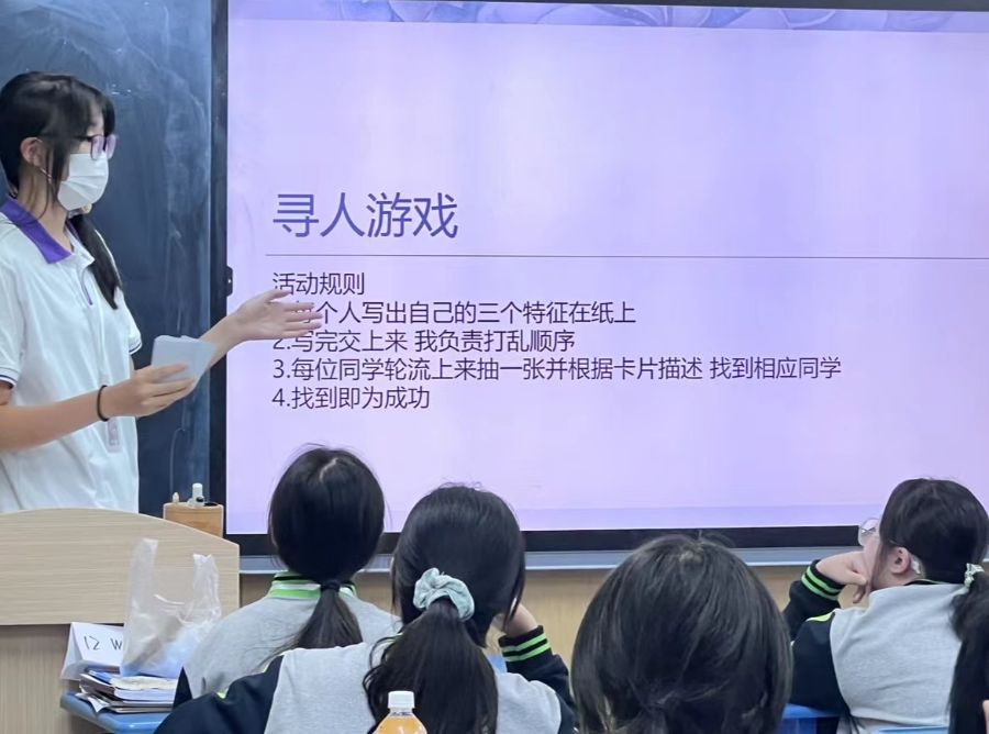 我们班昨日第一次开展了心理主题班会《适应新环境》我们做了各种各样的小游戏:小默契大游戏、小故事大启示、新校园猜猜猜、五指峰小游戏。