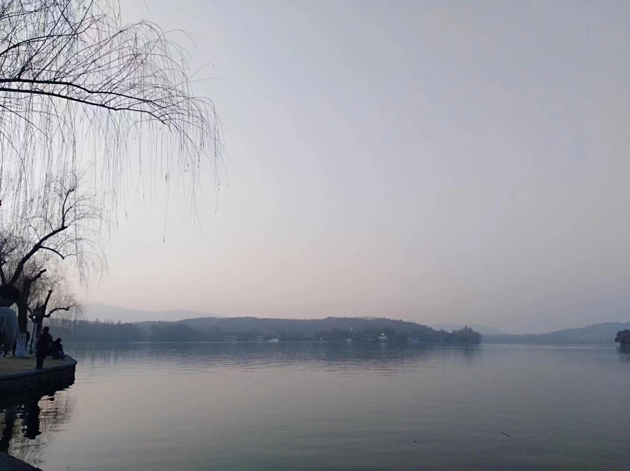 苏堤春晓是我最喜欢景点,因为夕阳西下的湖面,我坐在岸边,看着波光粼粼的湖面上成群结队的野鸳鸯一只只拍打着翅膀游来游去,看着几只白鹭从湖面上掠过,因为是冬天,岸边低垂的杨柳已经变得干枯,但并不显得萧瑟,只有夕阳余温的温暖,我向后躺在椅子上,看着这湖光山色,中国人的血脉觉醒了,我想隐居了。
