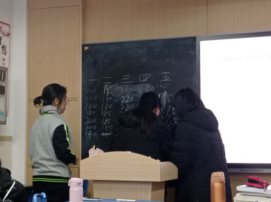 每位同学都认真参与。黑板上不断在增减的数字牵动着大家的心。