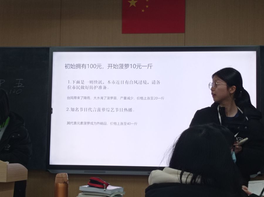 本次班会进行了个小活动。根据新闻,对市场的趋势进行判断。