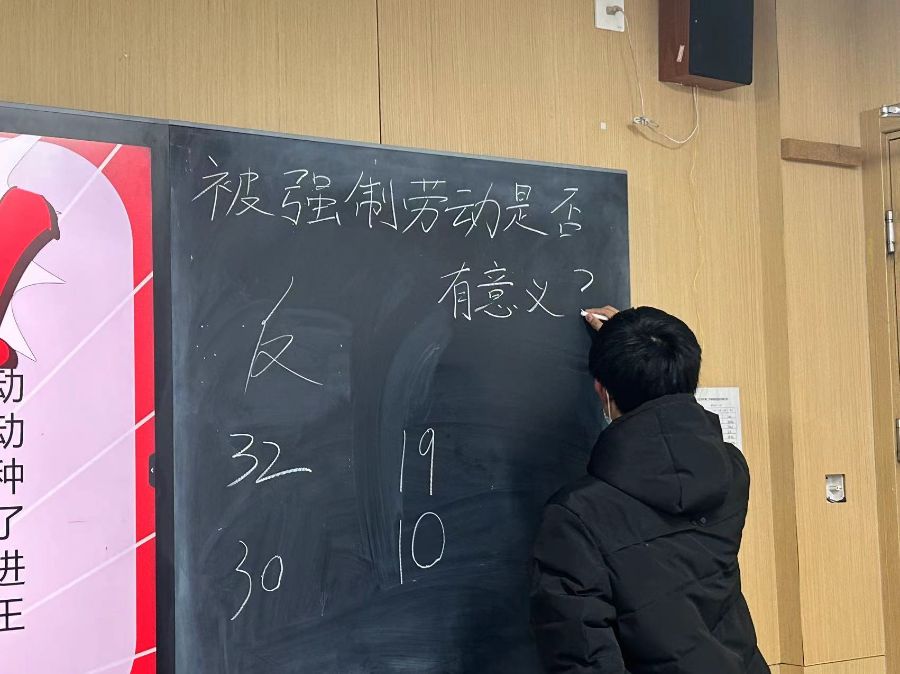 我们还开展了辩论赛,主题:强制劳动是否有意义?