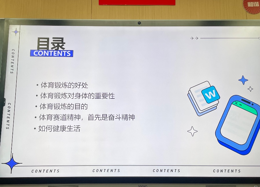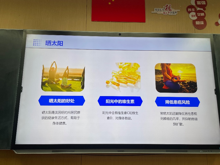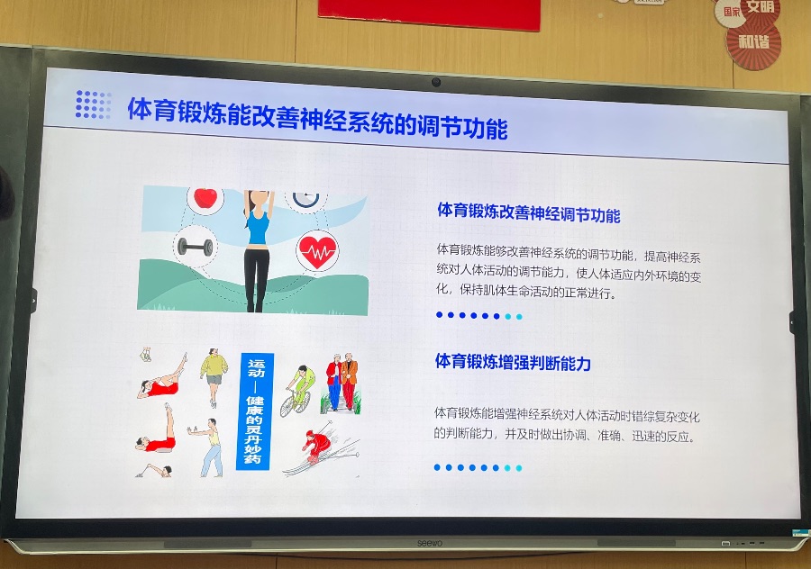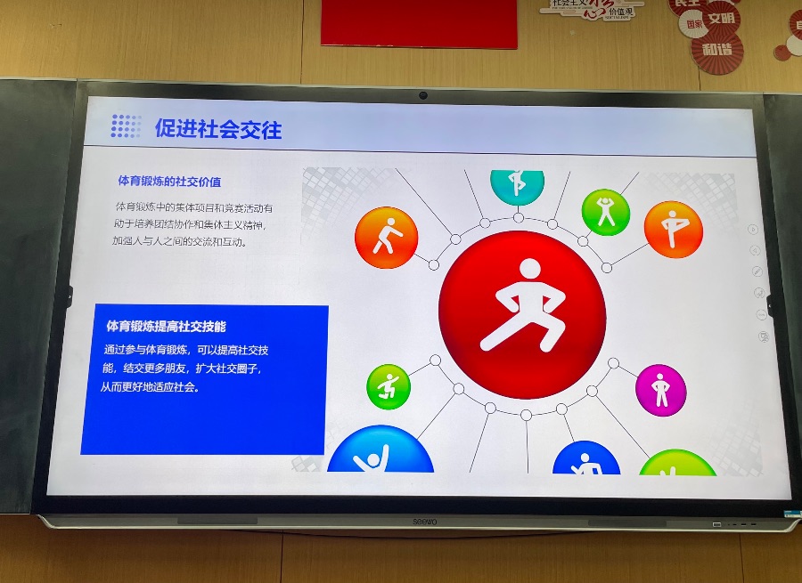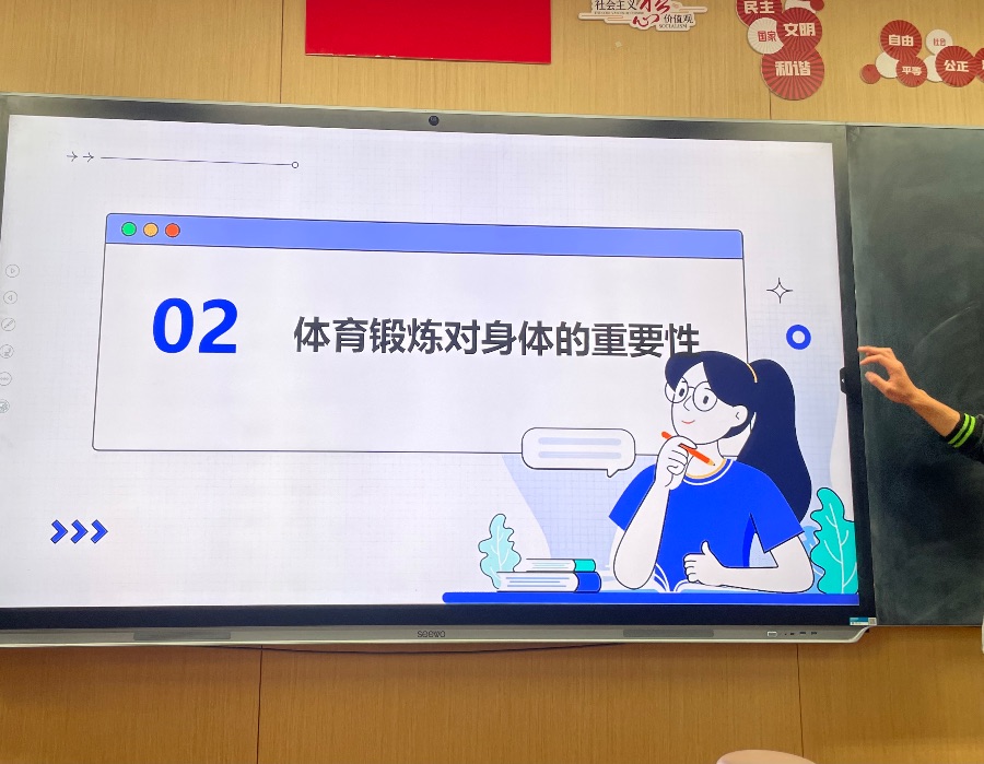 2024.5.21开展了以健康生活方式与体育锻炼为主题的班会课,分为体育锻炼的好处,体育锻炼对身体的重要性,体育锻炼的目的,体育赛道精神、首先是奋斗精神和如何健康生活为小标题开展,介绍了1.减少衰老危险。体育锻炼可以减少过早进入衰老期的危险,增强体质。2.预防疾病。体育锻炼是增强体质的最积极、有效的手段之一,能减低患病机会。 3.改善机能状況。体育锻炼有利手人体骨路、肌肉的生长,增强心肺功能,改善机能状况。4.增强适应能力。体育锻炼能提高抗病能力,增强有机体的适应能力。有助于保特肌体生命活动的正常进行。