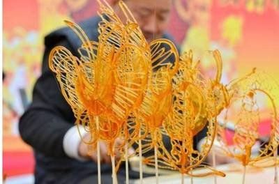 糖画是地道的民间画种,颇具特色的街市艺术,备受老百姓喜爱的工艺食品。无论在庙会集市,还是公园名胜,随处都可见糖画小摊。