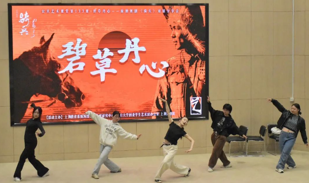 2025年4月26日,碧草丹心——舞剧《骑兵》分享会在复旦大学逸夫科技楼报告厅如期举行。剧目的两位执行导演达英嘎、伊日阿斯·达勒滨和三位主演演员陶楞、周穆增、吴永强走进校园,与上海高校师生分享这部草原史诗的台前幕后的故事,细数舞台上的高光时刻,畅谈表演中的真实感悟,带领观众体会肢体表达的无限可能。