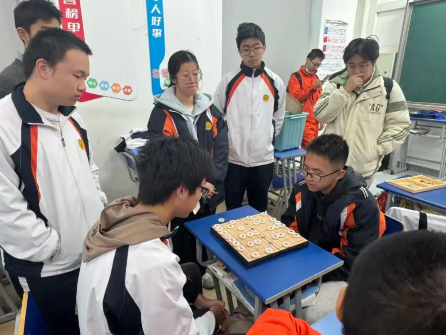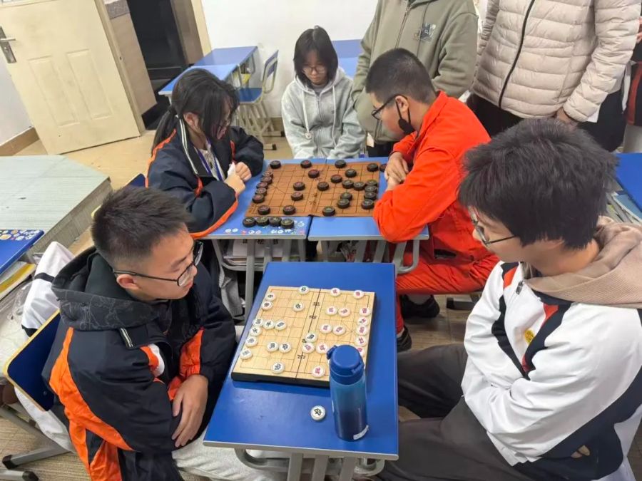 在象棋比赛中,同学们沉着冷静、暗藏谋略。棋盘之上,选手们步步为营、巧设圈套,攻防转换间尽显智慧博弈,观赛者屏息凝神,随棋局走势揪心赞叹,感受中华传统棋类运动的独特魅力。