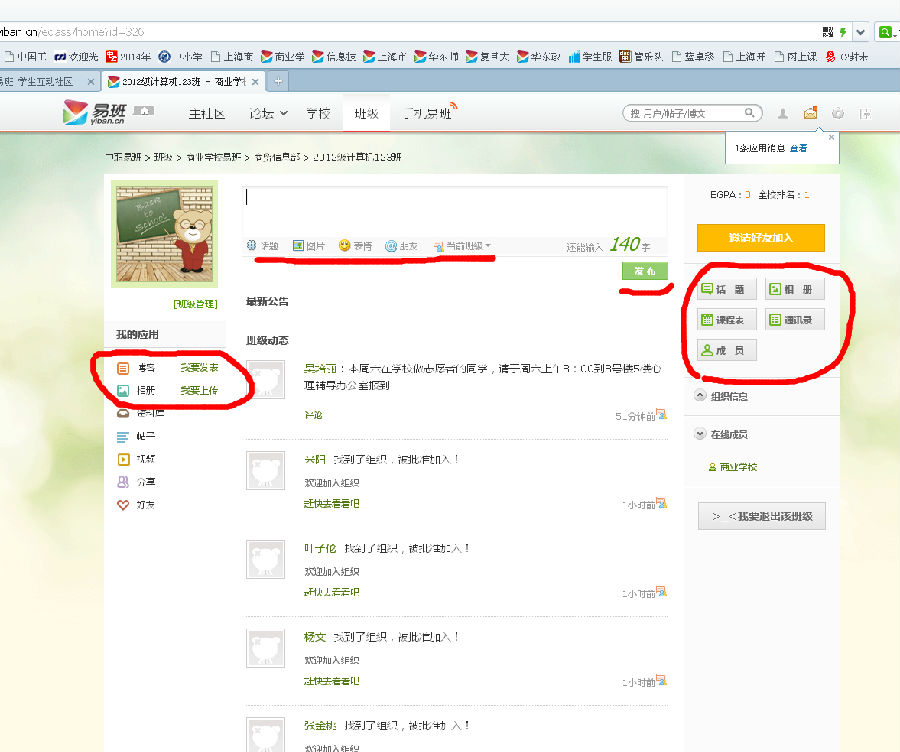 6、只希望本班同学看见的内容公告等可在班级页面内发布,如果希望全校都可以看到的内容可以到学校论坛内发帖,网上活跃度可以获得网薪(积分),学校和易班发展中心会不定期的进行线上线下的互动活动,对于活跃分子进行奖励。