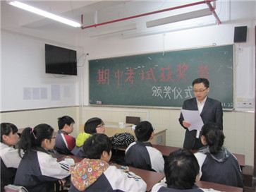 11月22日中午12:00,学生处召集10、11级本学期期中考试前十名学生及高复班班主任相聚四号楼高复班教室召开期中考试获奖者颁奖仪式,学生处副主任范荣老师参加仪式并主持。