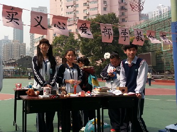 温暖的阳光洒在商会校的每一个角落,放学的铃声飘荡在教室里,走廊中,操场上。同学们一个个背着书包,脸上洋溢着将要回家的喜悦。但是他们路过操场的时候被一堆人所吸引,那些人在做什么呢?原来是商金教学部正在举行爱心义卖活动。