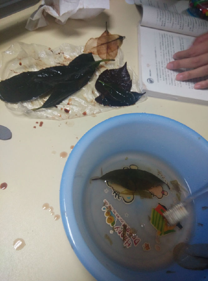 生物课上做叶脉书签什么的简直萌萌哒 虽然最后我连我的手和书都豁出去了 不过应该还不错扒 红色哒是我做的 别的也是萌萌哒 都是我们组的
