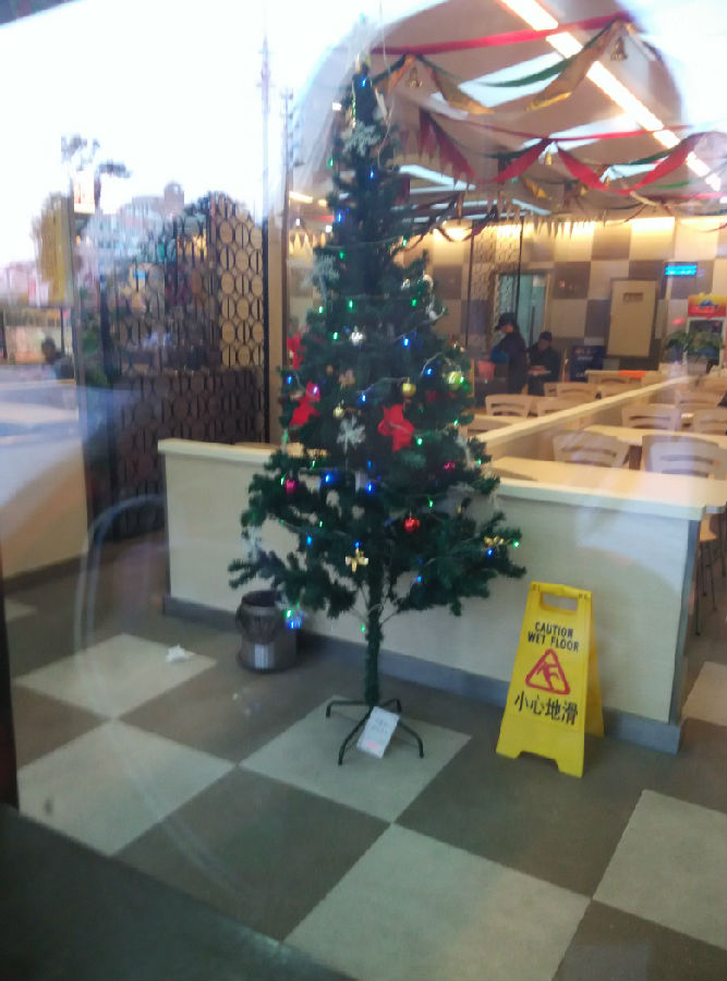 这棵树是我在等车的时候旁边一家快餐店里的,我就顺手拍下来了
