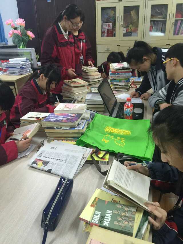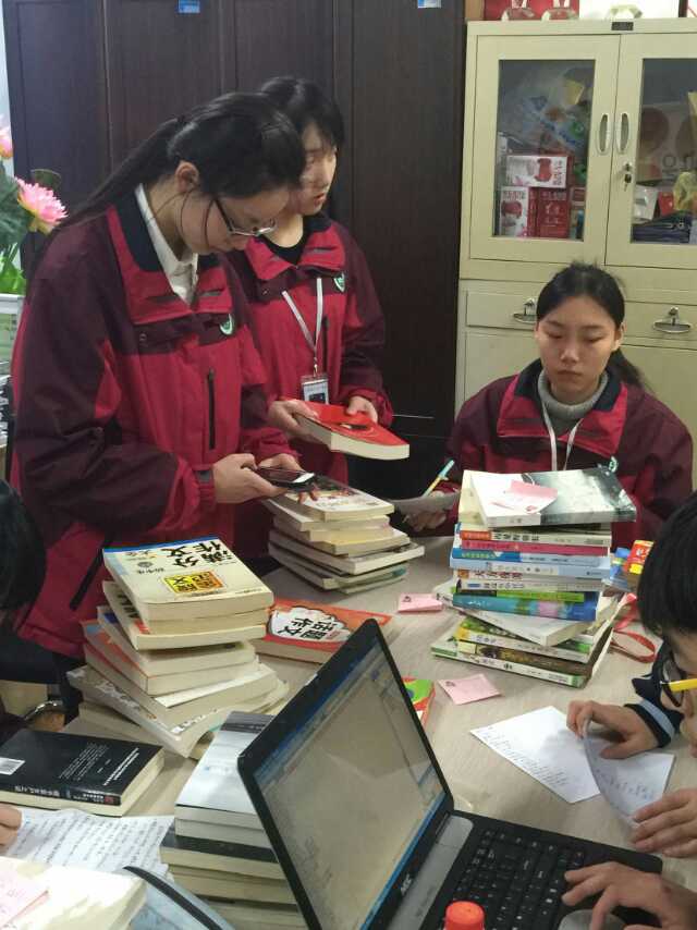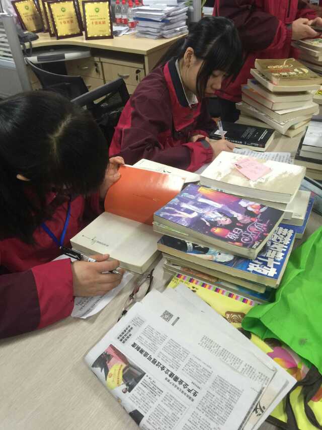 正式到了下午一点,每个成员都到齐后,所有人都开始了自己的工作。我们先由四个人组合把周五收集到的所有书籍进行分类整理,将内容为文学类的整理到一起,然后科普类的再归为一类摆到一块。就这样依次弄好后,再由两个人进行书籍的标价,然后将他们标好价的书本与价目单交给负责统计电子表格的成员进行处理信息和拍照,最后再把书按类别给剩余人负责写一句话的简介。