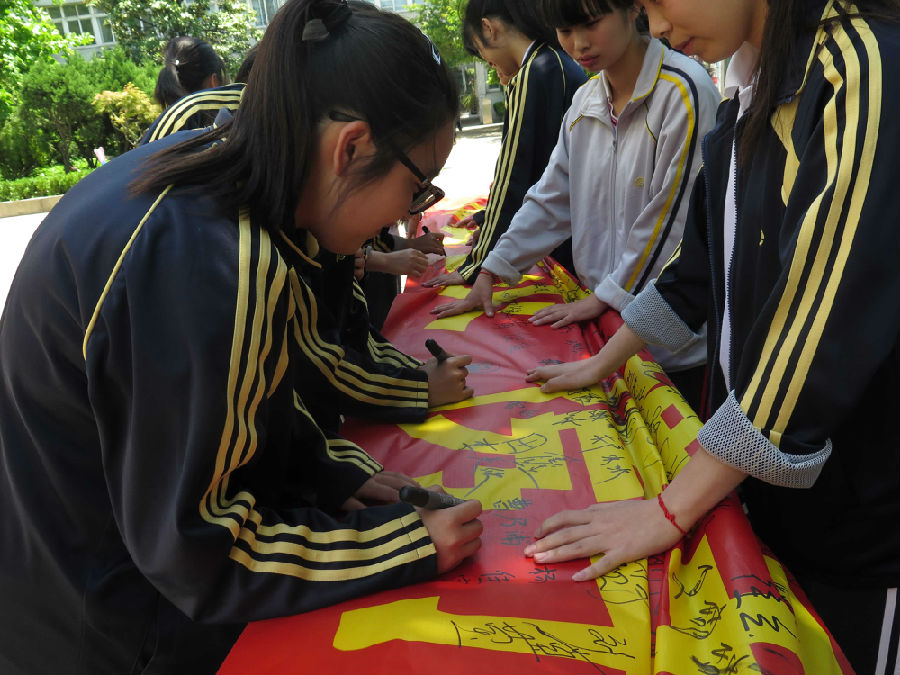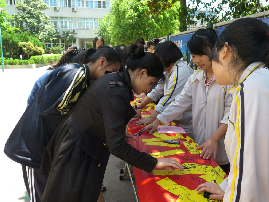 内容:(1)由学校心理老师带领大家参加5.25宣传月的开幕式签名活动。
